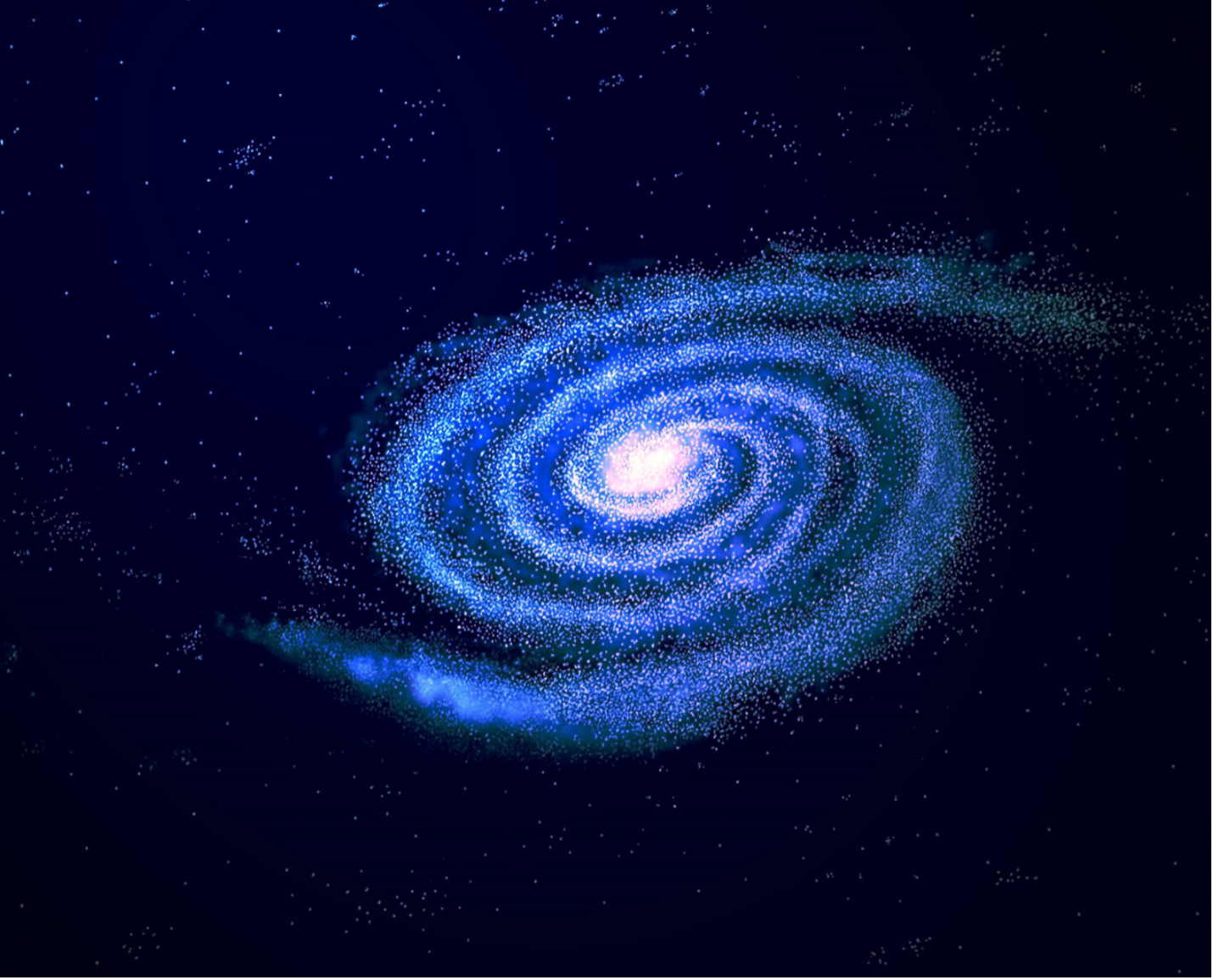(2) Die große Mauer ist die größte bekannte Massenansammlung im Universum, eine gigantische Ansammlung von Superhau-fen, d.h. Haufen von Galaxienhaufen. Sie befindet sich in einem Abstand von ca. 200 Millionen Lichtjahren von der Erde. Superhau-fen liegen gewissermaßen auf der Oberfäche von Blasen ‚leeren’ Raums, den sog. Voids, die einen Durchmesser von 50 bis 100 Millionen Lichtjahre haben. Die große Mauer liegt am Rande mehrerer Voids.